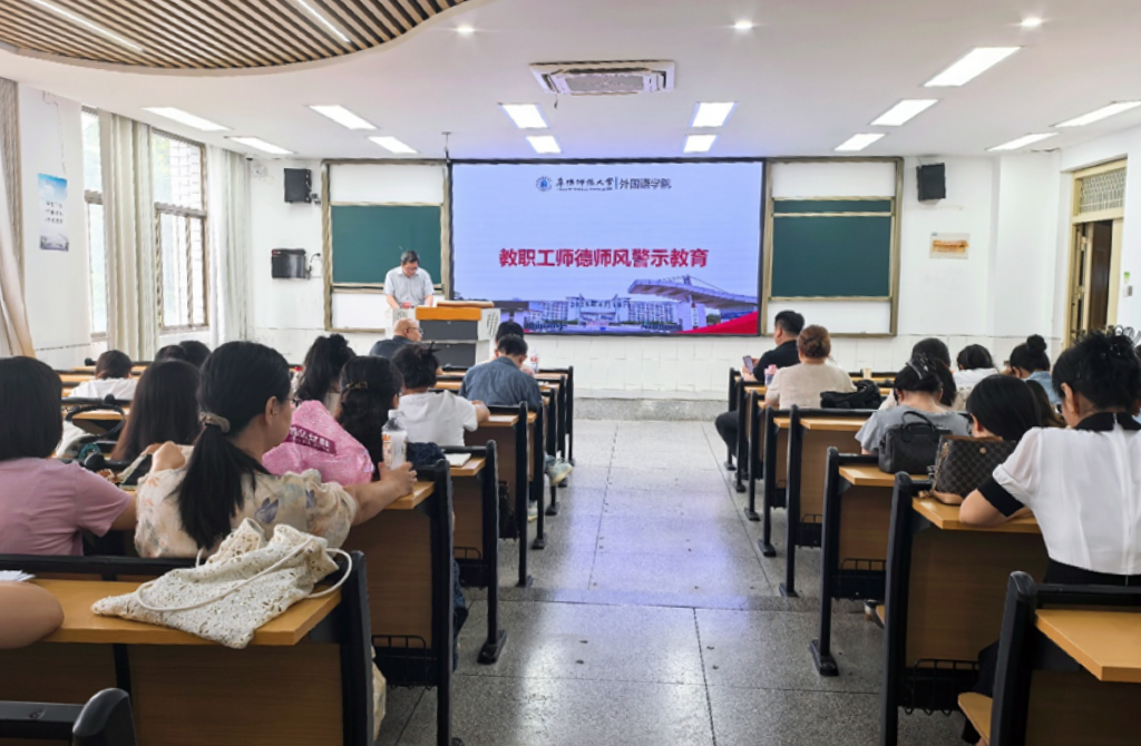 为进一步加强师德师风建设,落实立德树人根本任务,6月18日下午,外国语学院组织召开教职工师德师风警示教育大会。学院党政领导及全体教职工参会。会议由学院党委书记刘张飞主持。