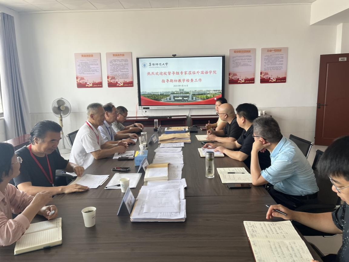 9月16日上午,校教学督导组专家汪芳启、刘勇、徐安银和曲强与校教学质量管理与评估处陈春琳一行莅临外国语学院,检查指导学院2025-2026学年秋季学期期初教学工作。外国语学院党政班子及本科、研究生秘书参加会议。会议由院长赵从义主持。