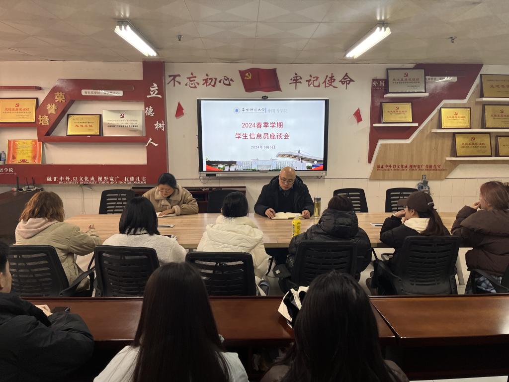 为全面了解新学期教学动态,进一步提升学院教学管理与服务水平,3月6日,外国语学院在景行楼816会议室召开2024年春季学期教学信息员座谈会。教务秘书马婷、教学信息员代表、国际留学生参加座谈。会议由副院长高福猛主持。