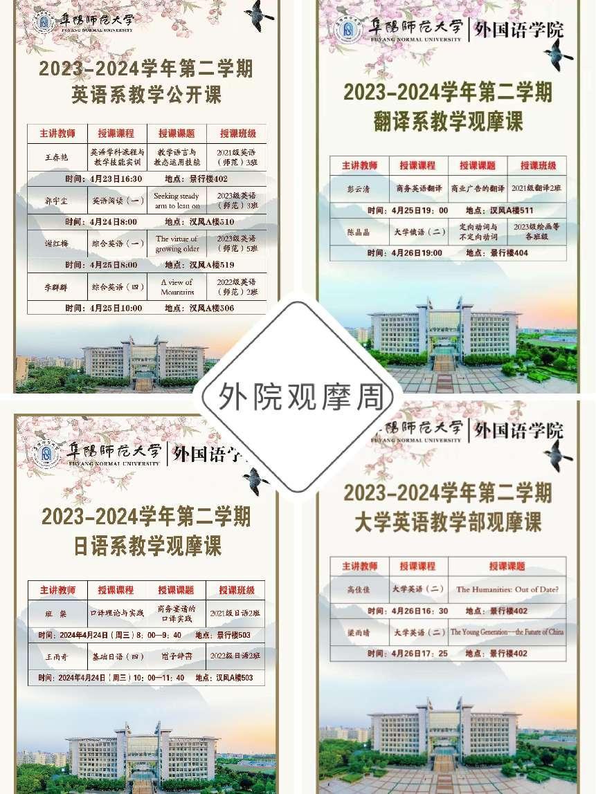 4月22日至26日,外国语学院组织开展了为期一周的教学观摩研讨活动。学院党政班子、学院督导组专家、各系部主任和近60位专任教师参与观摩研讨。
