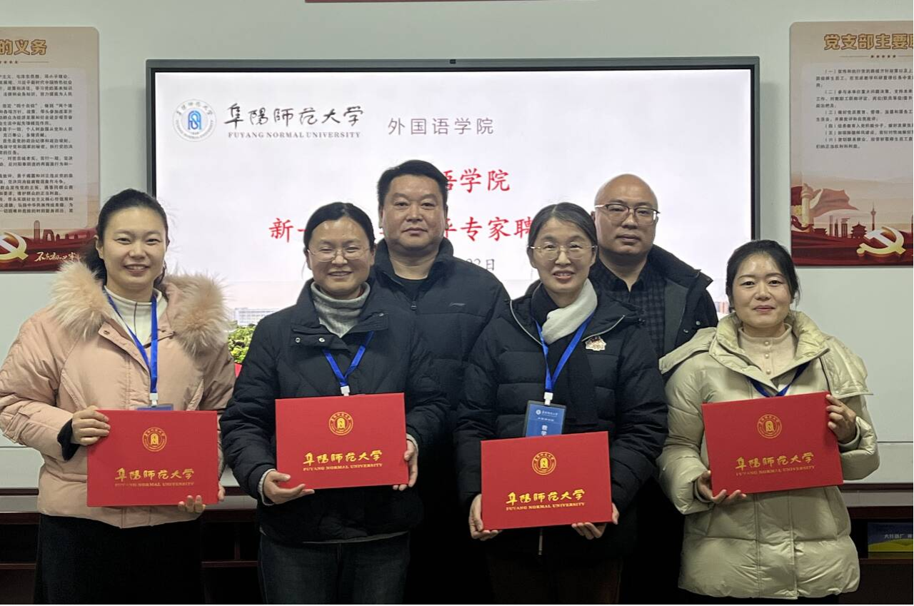 大会首先宣读了外国语学院新一届教学督导专家名单并详细解读了《阜阳师范大学外国语学院教学督导工作实施办法》,随后,赵从义为新一届督导组专家李珍莉、刘文仪、李红艳和徐志强老师分别颁发学院督导专家聘书和督导工作牌并集体合影留念。