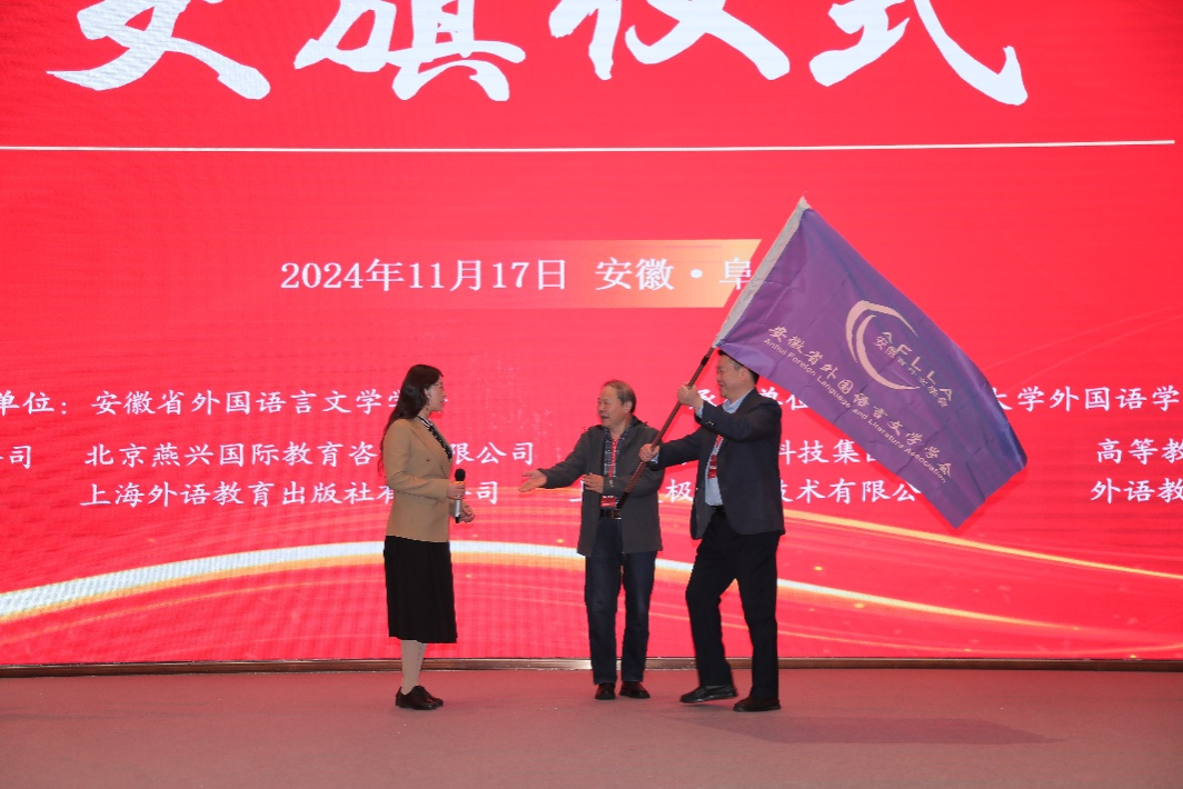 大会在本届承办单位阜阳师范大学外国语学院与第六届承办单位安徽国际商务职业学院国际教育学院的会旗交接中胜利闭幕。