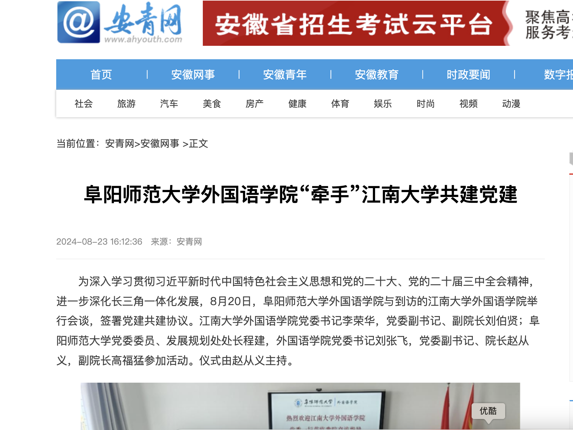 安青网报道:阜阳师范大学外国语学院“牵手”江南大学共建党建
