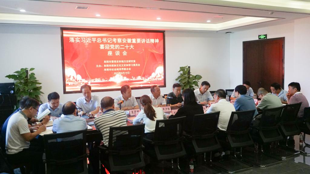 8月19日,阜阳市社科专家在市史志馆座谈习近平总书记考察安徽重要讲话精神的贯彻落实,共议阜阳发展。