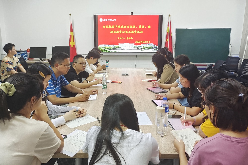 近年来,关于皖北方言的研究越来越深入,但是对于皖北方言的研究主要集中在语音、语用、语法等方面,对皖北方言俗语、谚语、歇后语的研究成果数量较少,研究也不够深入。讲座中,曹祝兵教授以阜阳方言歇后语为个案和视角,从促进未成年人心理健康发展、帮助未成年人树立良好的价值观念、推动城市精神文明建设、助力阜阳打造本地特色、传播本地语言文化等方面论述了皖北方言俗语、谚语、歇后语的德育功能和作用,并提出在社会、学校、家庭三个层面进行实施的途径。