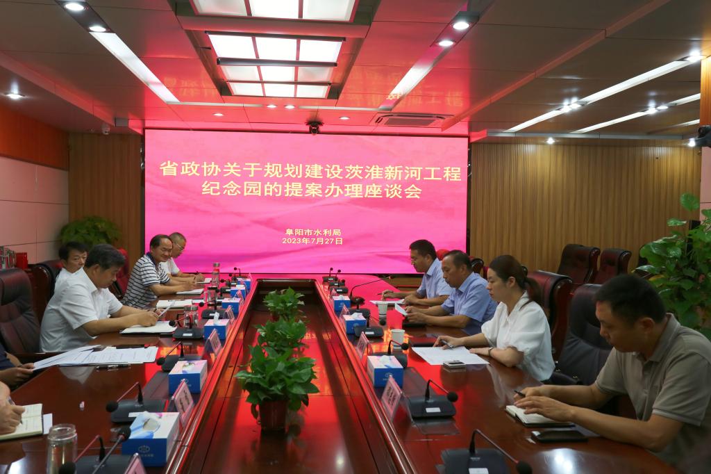 7月27日上午,“省政协关于规划建设茨淮新河工程纪念园的提案”办理座谈会在市水利局召开,市委宣传部副部长燕少红、市水利局局长曹涛出席,座谈会由中心主任杨新宇主持。