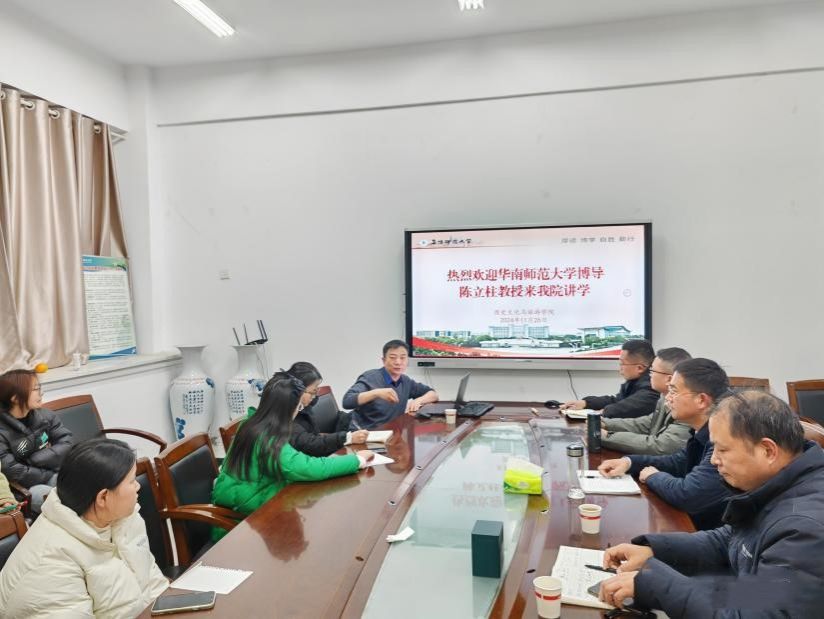 11月26日下午,华南师范大学博士生导师陈立柱教授应邀来校作题为《淮河中游文化因素对于齐地思想文化的深刻影响》的专题讲座。讲座由历史文化与旅游学院副院长郭从杰主持,校内部分淮河文化研究师生到场聆听。