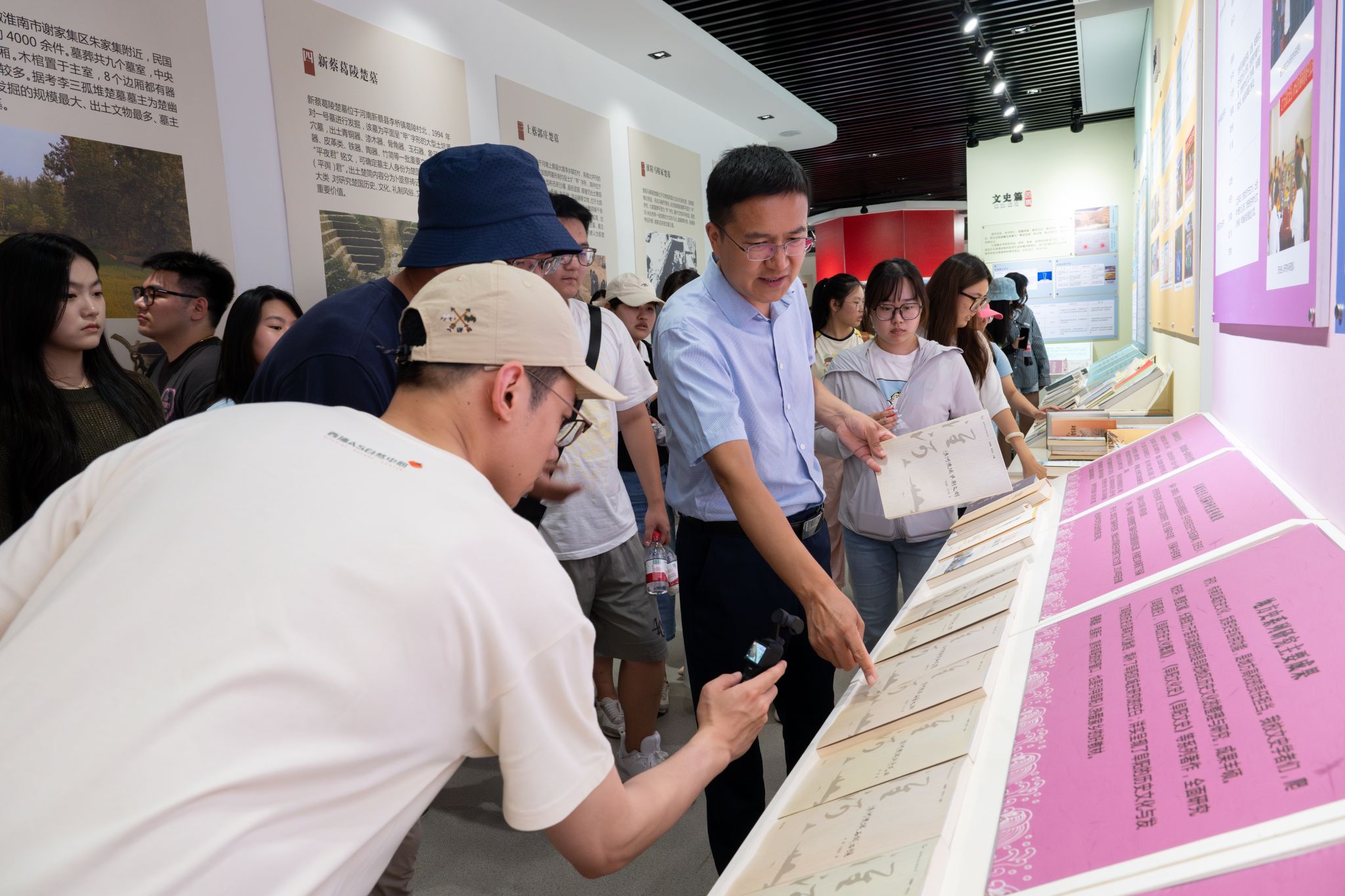 研学团首先参观了校史馆,了解了我校扎根皖北,服务地方,积极融入长三角一体化发展,努力建设高水平师范大学的办学历程。在淮河文化馆,师生们探访了淮河流域历史文化的传承发展和我校淮河文化研究创新的丰厚成果。