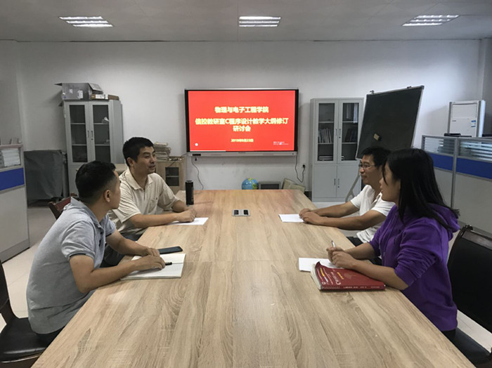 为了响应我校深化教学改革、提高教学质量的号召,我院信息处理与控制教研室于2019年9月23日举办了《C语言程序设计》教学大纲修订研讨会。本次研讨会由我院信控教研室负责人朱辉组织,本学期该门课程的主讲老师共同参加,课程教学大纲作为与专业人才培养方案相配套的指导性文件,是最重要的教学文件之一。