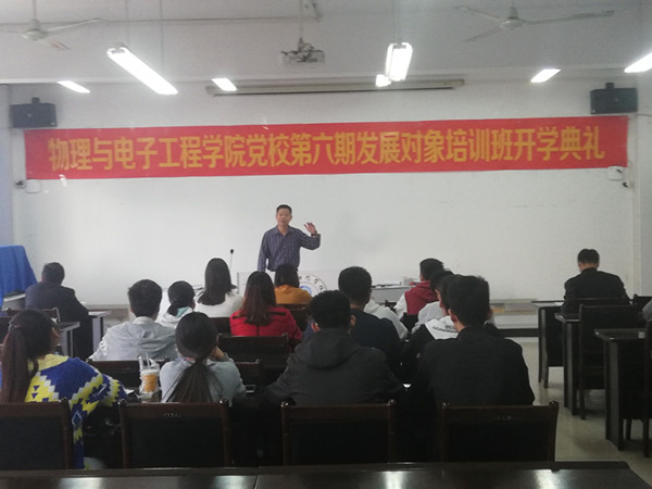 为贯彻落实全面从严治党和提高发展党员工作质量的要求,按照《中国共产党发展党员工作细则》《普通高等学校学生党建工作标准》等有关文件规定和校党委统一工作部署,10月13日上午,我院分党校在西湖校区躬行楼C楼505多媒体教室举行第六期发展对象培训班开学典礼。我院党委书记马健、副书记田志坚、党委委员、培训班班主任何文、学生党支部书记陈宏建、孙倩倩以及31位学员参加开学典礼,典礼由田志坚主持。