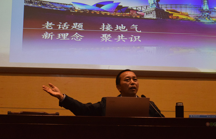 报告会上,燕少红首先阐述了开展这次主题教育的重要性和必要性,介绍了主题教育的根本任务、具体目标和总体要求。然后,燕少红梳理了十八大以来中国取得的发展成就,无论是中国高铁、移动支付等中国“名片”,还是震撼人心的国庆阅兵,都让每一位听众感到振奋和自豪。燕少红强调:形式主义、官僚主义的根本原因是对习近平新时代中国特色社会主义思想学习的不全面、不系统、不深刻,因此要力戒形式主义、官僚主义。报告会上,燕少红通过图文并茂和理论联系实际的方式,生动讲述了习近平新时代中国特色社会主义思想的形成背景和形成过程,并就其重大意义、核心内容和品格特征作出了相应解释。整场报告内容丰富,意义深刻;主讲人燕少红以扎实的理论知识和丰富的实际事例,给参会的师生上了一堂生动的形势政策课,报告真正做到了打动人、鼓舞人和培养人的教育意义。