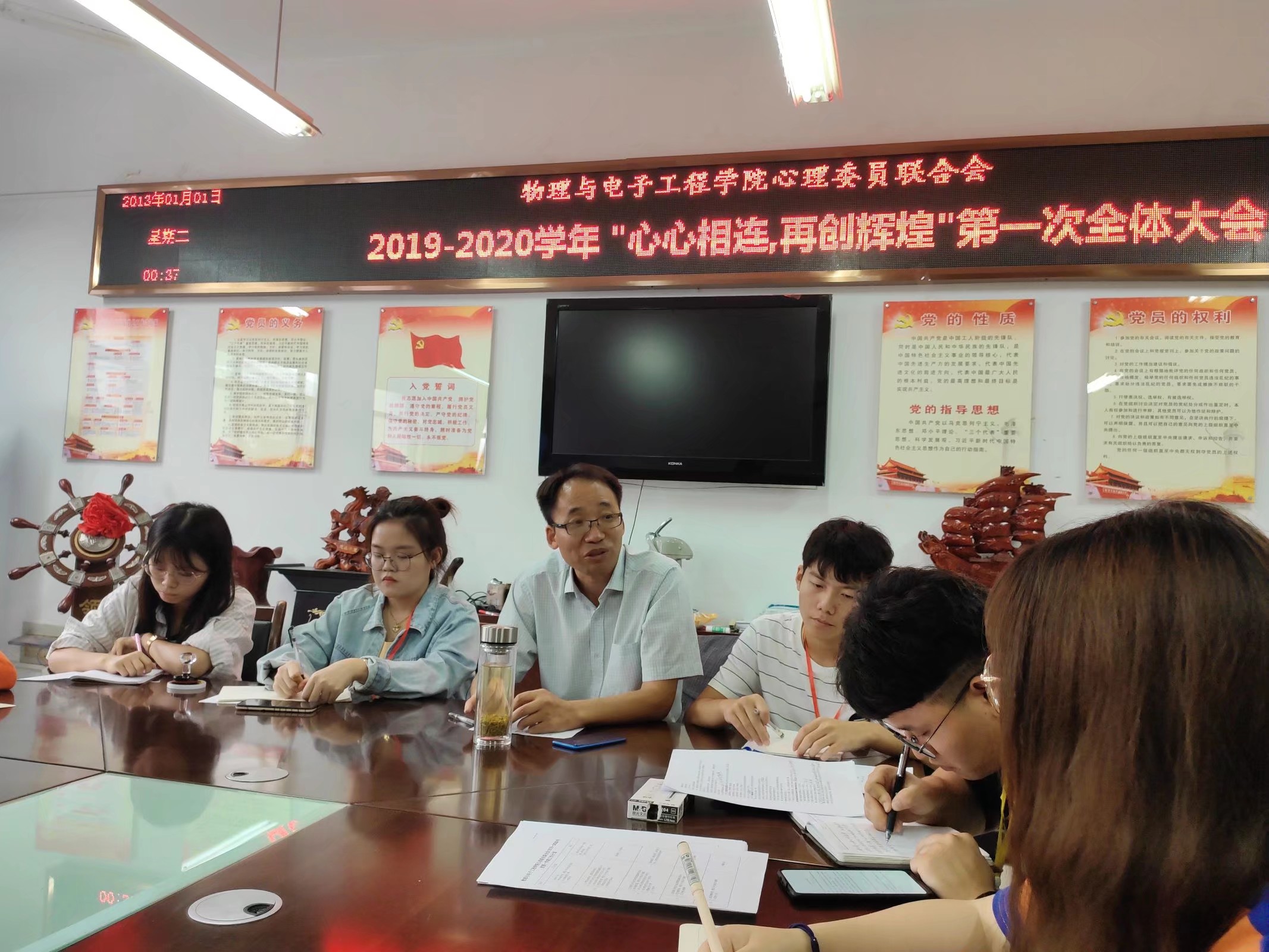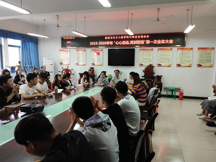 为了回顾过去、规划未来,促进2019级新成员了解心理委员联合会,增强集体归属感,2019年9月17日中午,我院心理委员联合会在西湖校区躬行楼C楼306会议室召开了以“心心相连 再创辉煌”为主体的全体大会,我院心理委员联合会指导老师何文和全体成员参加会议,会议由2018级电气工程及其自动化1班魏兵峰主持。