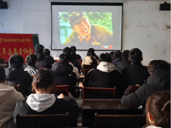 为深入学习雷锋精神,培养同学们的志愿服务意识,3月5日,物理与电子工程学院学生会在躬行C楼505多媒体教室组织开展观影活动。活动以“重温雷锋事迹,传承雷锋精神”为主题,吸引众多同学积极参与。活动由学生会志愿服务中心范植淞同学主持。