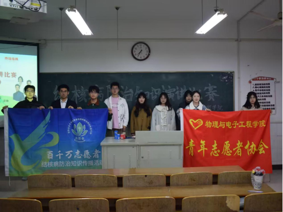 为提高学生对结核病防治知识的认知水平,增强自我防护意识,营造健康的校园环境,3月15日,物理与电子工程学院在躬行A楼101多媒体教室举办以“全面行动 全力投入 全民参与 终结结核”为主题的结核病防治知识演讲比赛。