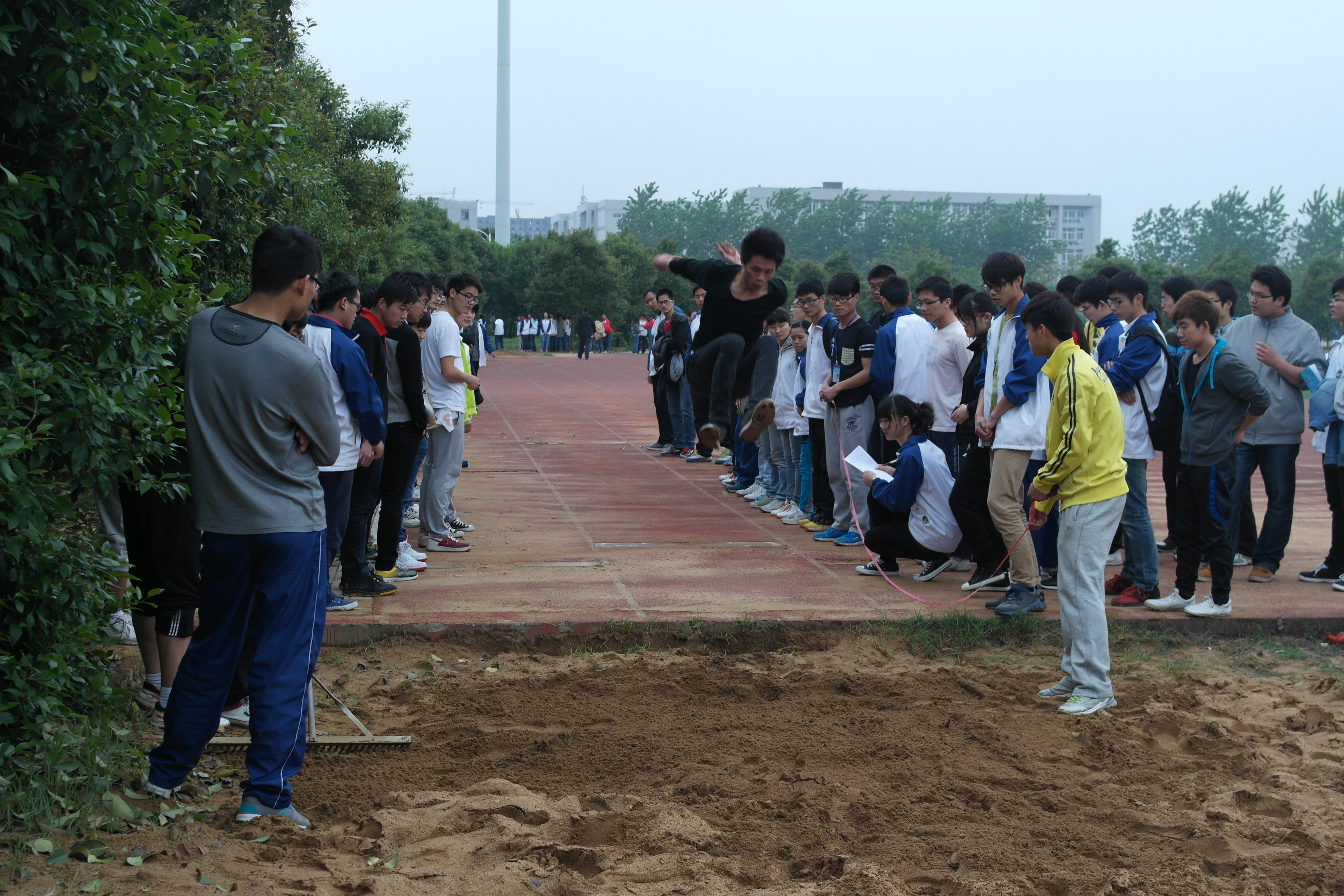 运动在进行跳远比赛