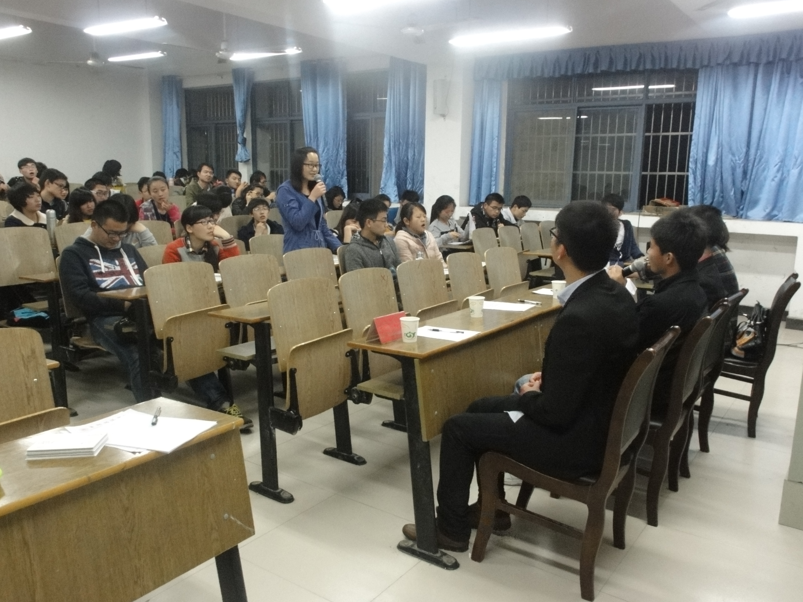学长学姐们结合自己2014年考研实际情况,分别从考研方向、院校选取、英语备考的技巧、考研书籍的选择及政治的复习、专业课的复习框架、心态的调整、复试的准备及调剂学校的选择等不同方面做了详细讲解。互动环节中,优秀代表们解答了有考研意向的学生们提出的疑惑。