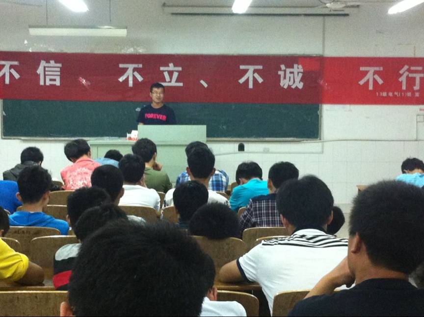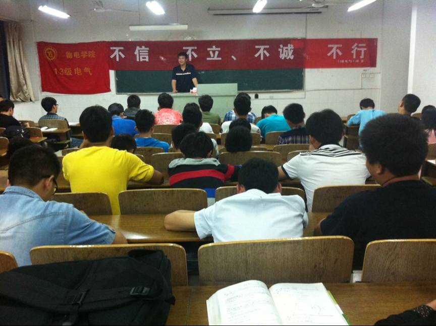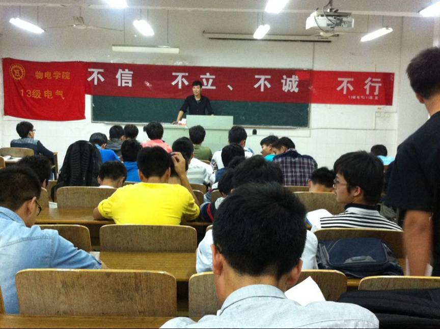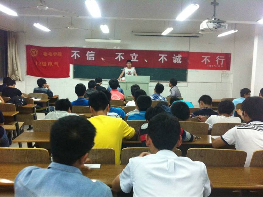 5月14日晚上,2013级电气工程及其自动化1班在实验A楼201教室开展了关于“诚信”的主题班会,辅导员何文老师和全班同学与会,本次班会由班长秦笑主持。