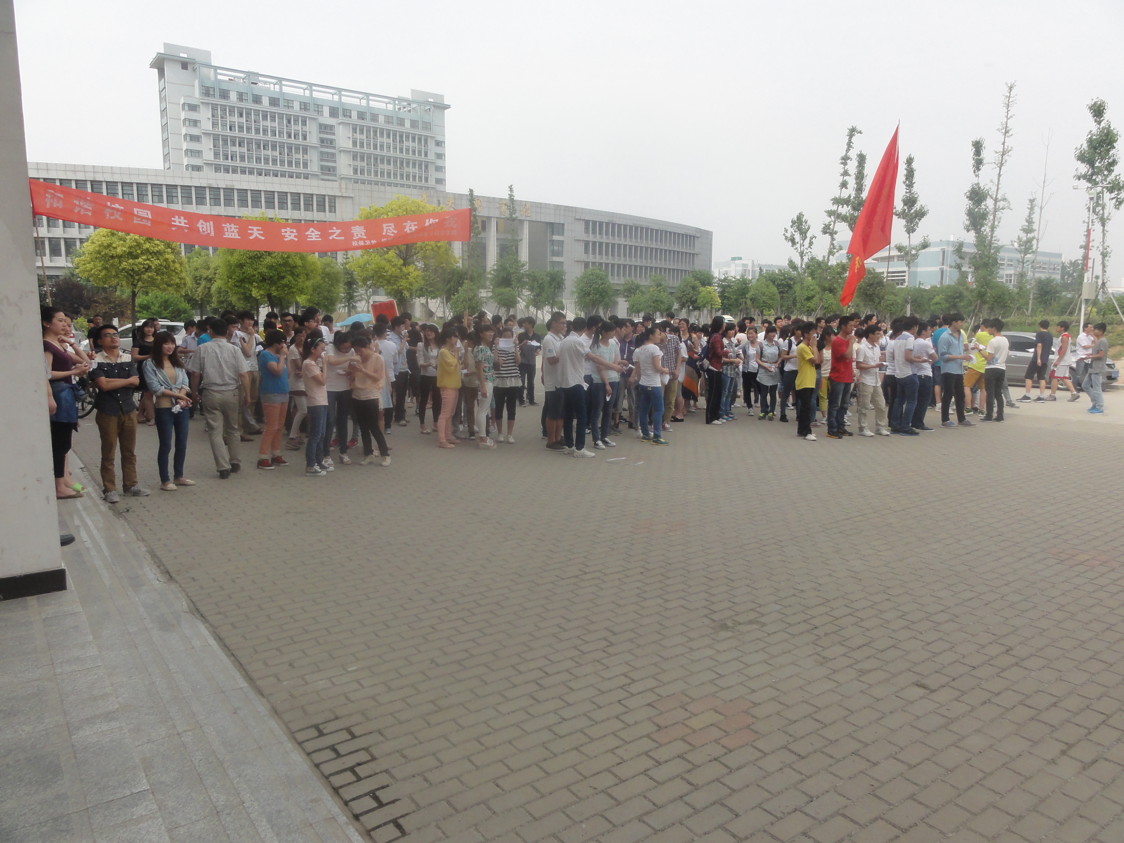 为进一步加强广大师生防灾减灾意识,提高应对突发事件及逃生自救能力, 5月28日,物理与电子科学学院联合校保卫处和学生处在实验C楼开展了消防、防震紧急疏散及消防器材使用演练,阜阳市地震局业务科科长
