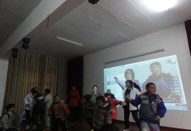 志愿者们到达学校时,便受到了学校里工作人员和小朋友们的热烈欢迎。在义演正式开始前,物电院青年志愿者协会会长竺银松上台发言讲话。他表示“自己已是第三次来这里,每次来这里,他都会受到很深的触动,每次都被这里孩子的纯真快乐感动到。希望我们大家都可以尽自己力量来帮助这些孩子,让他们能够更好地适应社会。”随后,爱心义演正式开始,志愿者精心准备的歌曲串烧、吉他演唱以及舞蹈等精彩节目让这群特殊的孩子们感到十分开心。当志愿者们在台上跳《小苹果》时,台下的小朋友们欢乐地跟着一起跳,义演推向了高潮。最后,爱心义演在吉他演奏《天空之城》中圆满落下帷幕。