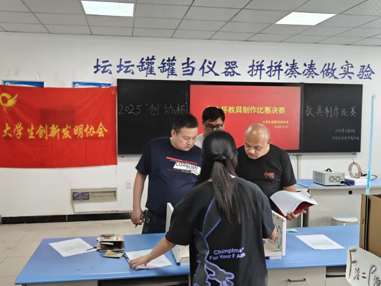 为激发学生创新思维,推动教具制作与教学实践的有机结合,大学生创新发明协会于2025年4月至5月期间举办2025年“创协杯”教具制作比赛,社团指导老师唐义甲,教师韩修林、宋仁武担任评委。