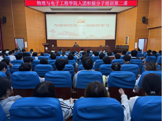 使命在肩催人进,榜样为灯引前行。物理与电子工程学院团委通过专题培训深化入团积极分子培养,引导学员在学习中感悟党和国家对青年的殷切期望,主动锚定“立大志、明大德、担大任”的新时代成长目标。