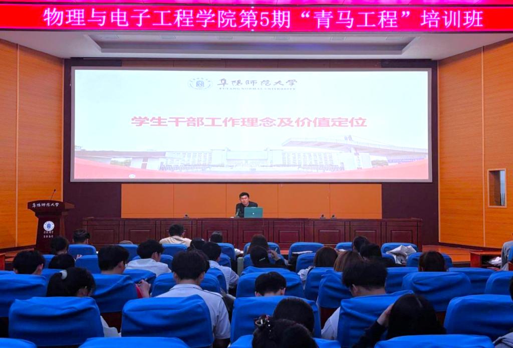 为深入学习贯彻习近平新时代中国特色社会主义思想,切实加强学生干部队伍工作理念,进一步提高学生干部的综合素质和工作能力。4月10日,物理与电子工程学院团委在躬行F楼报告厅开展以“学生干部工作理念及其价值定位”为主题的第5期“青马工程”理论培训班结课。由院团委负责人李振主讲,青马工程全员参与。