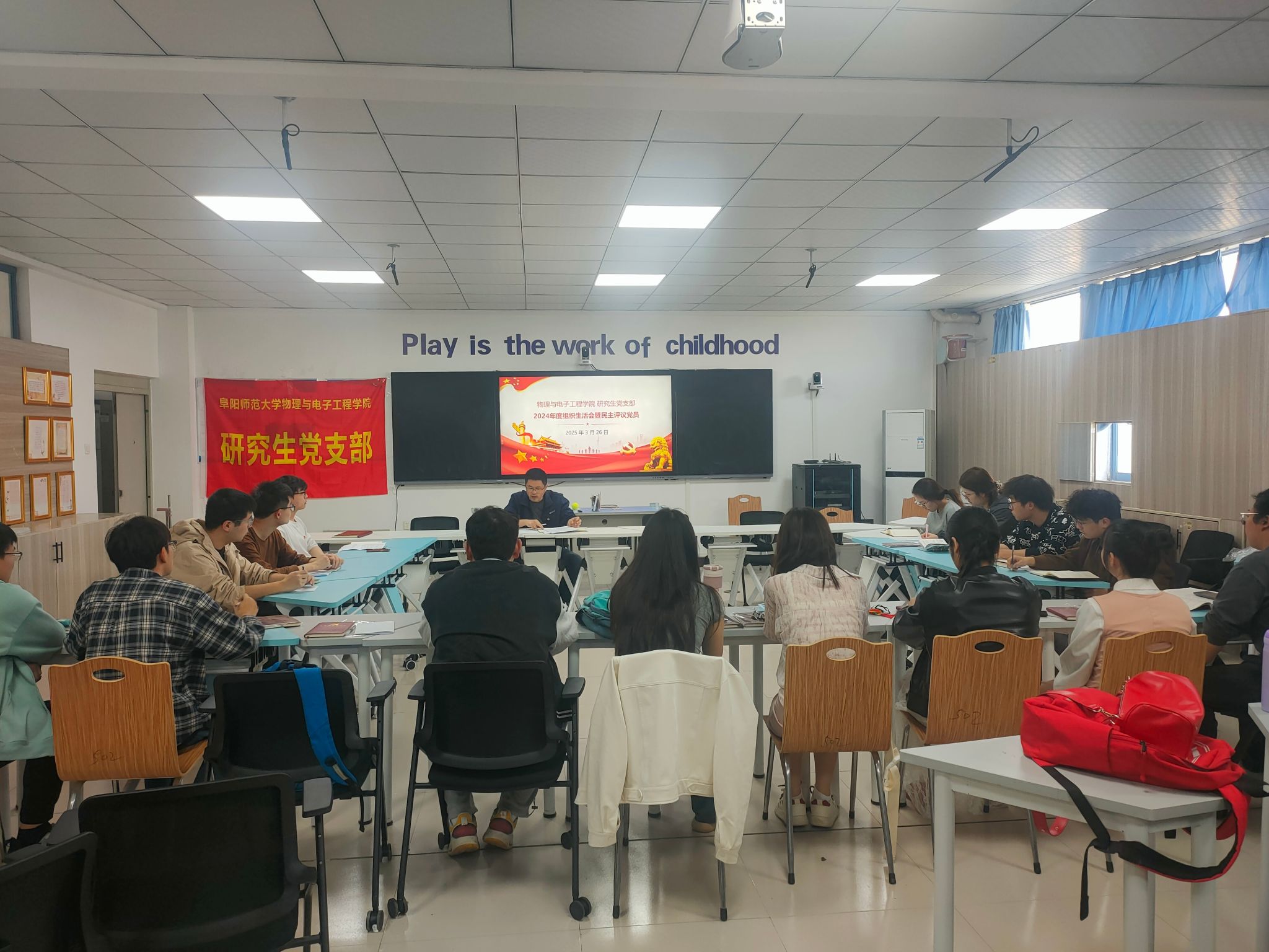 为深入学习贯彻党的二十届三中全会精神,严肃党内政治生活,物理与电子工程学院研究生党支部于3月26日召开年度组织生活会。会议由党支部书记赵明同志主持,支部全体党员参会,部分入党积极分子列席了会议。