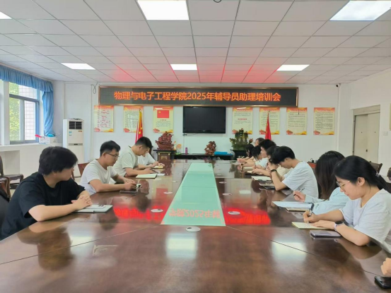 为提升2025年辅导员助理的业务能力与综合素质,更好地协助学院开展学生工作,6月30日,物理与电子工程学院团委在躬行C楼306会议室召开2025年新生辅导员助理培训会。学院团委负责人李振、辅导员陶清和李军、2024年辅导员助理代表以及2025年全体辅导员助理参加。