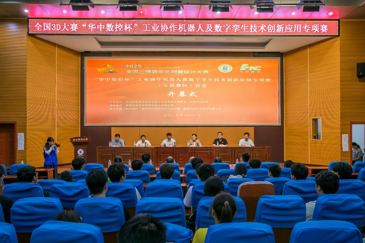 7月5日至6日,第18届全国三维数字化创新设计大赛“华中数控杯”工业协作机器人及数字孪生技术创新应用专项赛安徽赛区选拔赛在阜阳师范大学西湖校区举行,来自合肥工业大学、安徽大学、安徽理工大学、安徽工业大学、阜阳师范大学等13所高校37支代表队150余名师生参加了竞赛。大赛由武汉华中数控股份有限公司协办并提供技术支持。