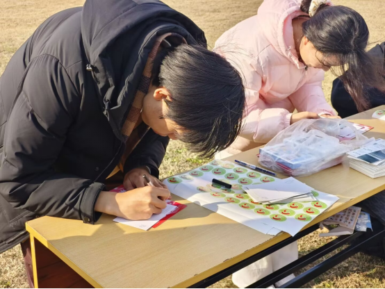 活动以爱心路线串联起六个趣味站点,现场处处洋溢着热闹又暖心的氛围:站点一为心理知识问答区,同学们认真思索、踊跃答题,在互动中收获丰富的心理知识干货;站点二“声动瞬间”环节,同学们高声诵读正能量语录,洪亮的声音传递着青春朝气,镜头也定格下一张张自信昂扬的脸庞;站点三“投壶挑战”区里欢呼声此起彼伏,大家屏息凝神瞄准壶口,投中时的阵阵喝彩,让大家在“十进一”的趣味挑战中沉浸式感受传统民俗的魅力;站点四考研祝福驿站温情满满,同学们提笔写下真挚祝愿,抽取暖心明信片,字里行间满是对学长学姐的美好期许;站点五“猜歌名”互动环节,同学们组队合作、共同思索,在趣味竞猜中展现个性,也拉近了彼此的距离;站点六创意绘画区色彩斑斓,同学们挥洒画笔绘就充满正能量的作品,也定格下属于自己的快乐与创意瞬间。