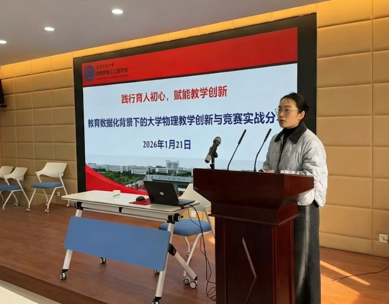 为扎实推进第六届全国高校教师教学创新大赛安徽省赛备赛工作,深入落实教育数字化的战略部署,探索人工智能技术与基础课程教学的深度融合,1月21日下午,我院邀请了南京工业大学副教授、博士生导师陆蓉儿作题为“教育数字化背景下的大学物理教学创新与竞赛实战分享”专题辅导培训讲座。讲座由学院副院长武山主持,学院全体教师及研究生参加培训。