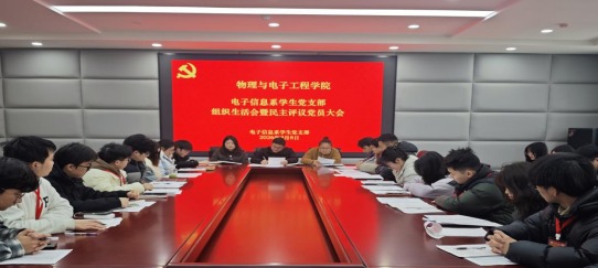 为深入学习贯彻党的二十届四中全会精神,巩固拓展党内集中学习教育成果,持续提升党支部组织力、凝聚力和战斗力,2026年3月8日下午,电子信息系学生党支部在新工科C楼508会议室召开2025年度组织生活会暨民主评议党员大会。会议由党支部书记陶清主持,支部全体党员参加。