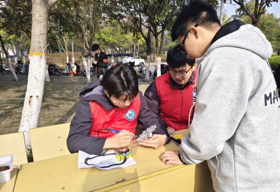 活动现场,协会十几名成员组成的维修小队,积极响应雷锋月“众手连成一心,真诚回报社会”的号召,用实际行动传递温暖与爱心。随着午间人流量增大,前来咨询和送修的同学络绎不绝,志愿者们分工明确、各司其职。有的负责登记信息,有的耐心倾听故障描述,有的专注检测排查。维修台前,成员们仔细拆解、逐一检测,台灯、电饭煲、路由器,各类常见家电在他们手中重获新生。一位同学的台灯刚买不久便无法点亮,经过仔细检查,志愿者发现是内部线路接触不良,很快便将其修复;一位同学因U盘无法读取文件而苦恼多日,经过维修后,问题在短短几分钟内迎刃而解。对于配件缺失或故障较为复杂的情况,志愿者们也毫不敷衍,详细记录设备信息,耐心向师生说明问题所在,并提供后续维修建议。值得一提的是,不少同学已是多次接受该协会的帮助,有同学感慨道:“修理了这么多次,每次都能感受到你们的真诚与热情。”现场除了维修,协会成员还主动向等候的师生普及电器日常使用与保养知识,讲解常见故障的简易排查方法,将“授人以渔”的理念融入志愿服务之中,帮助更多人在今后能够独立应对小问题。