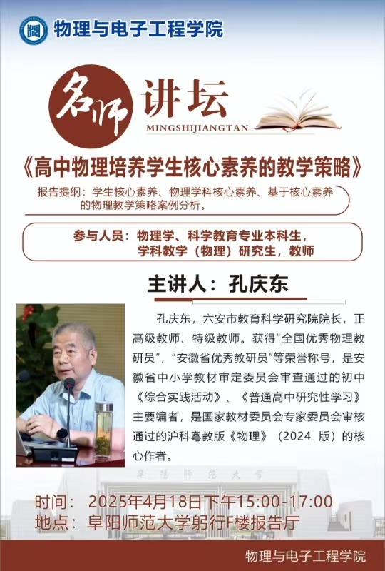 学术报告预告——高中物理培养学生核心素养的教学策略