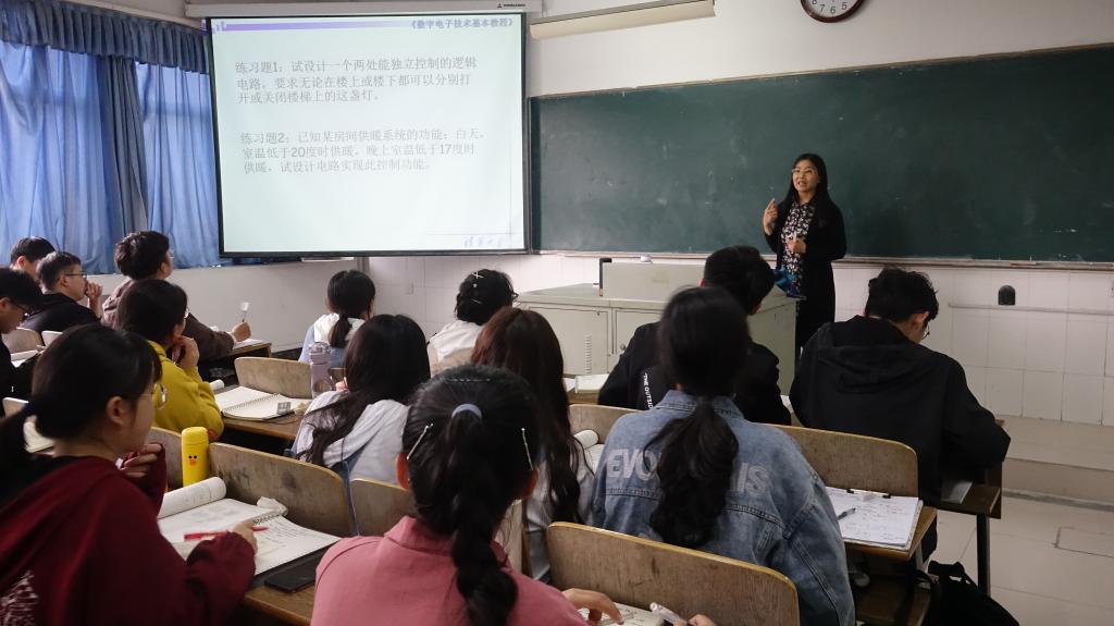 经教研室推荐,本学期教学公开课由四位老师主讲,韦永梅老师讲授的内容是《数字电路》课程中的“译码器的分析与设计及典型译码”,陶仁峰老师讲授的内容是《电力系统继电保护》课程中的“电网距离保护”,柴晓娜老师讲授的内容是《力学》课程中的“刚体运动的描述”,吴奇老师讲授的内容是《线性代数》课程中的“线性方程组的解”。各位主讲教师教学方法灵活多样,善于运用实例来激发学生学习兴趣、开启学生思维,将课程思政元素融入课堂教学,有效调动了学生的学习积极性,课堂教学效果明显。