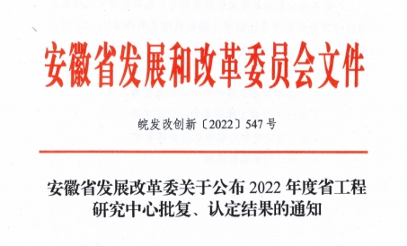 近日,安徽省发展和改革委员会发布了《安徽省发展改革委关于公布2022年度工程研究中心批复、认定结果的通知》,我院牵头申报的“安徽省农产品质量安全数智化工程研究中心”获批立项建设。