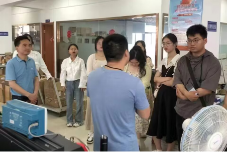 光驰公司工作人员在给应用物理学专业学生讲解生产过程