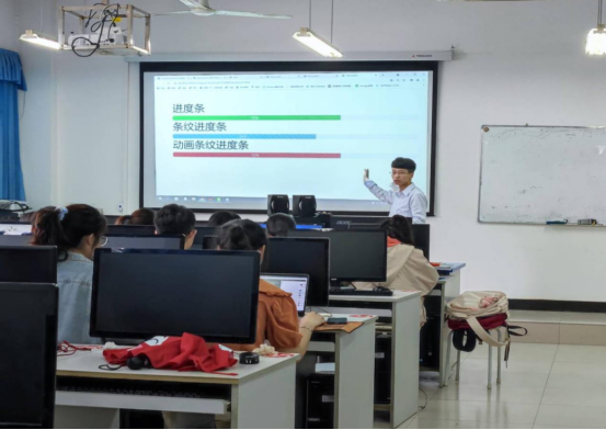 培训过程中,华晟经世驻校工程师讲授了HTML、CSS、JS、bootstrap、highcharts、vue和elementUI等前端理论知识,并配合大量实验案例实践。通过一个个前端案例的成功开发,学生对常见网站如阜阳师范大学官网页面的技术实现有了更专业的认知,并对WEB前端开发表现出浓厚兴趣。