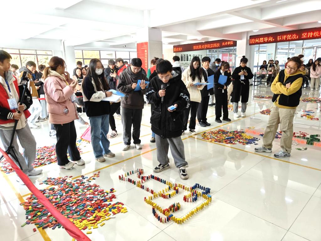 为进一步丰富同学们的大学生活,提高同学们的团队协作能力和动手能力,促进同学们全面发展,同时营造一种积极向上、美好和谐的校园氛围,我院心联于11月26日在汉风楼一楼举办以“同心共建 创意无限”为主题的多米诺骨牌大赛。