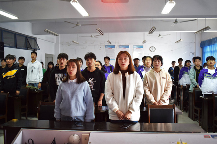 2019级电子1班朱少强带领大家学习《阜阳师范大学学生会致全体同学制止餐饮浪费行为的倡议书》。通过学习和讨论,同学们达成一致共识,在以后的校园生活中坚决做到文明餐饮、理性消费、健康饮食、积极监督。