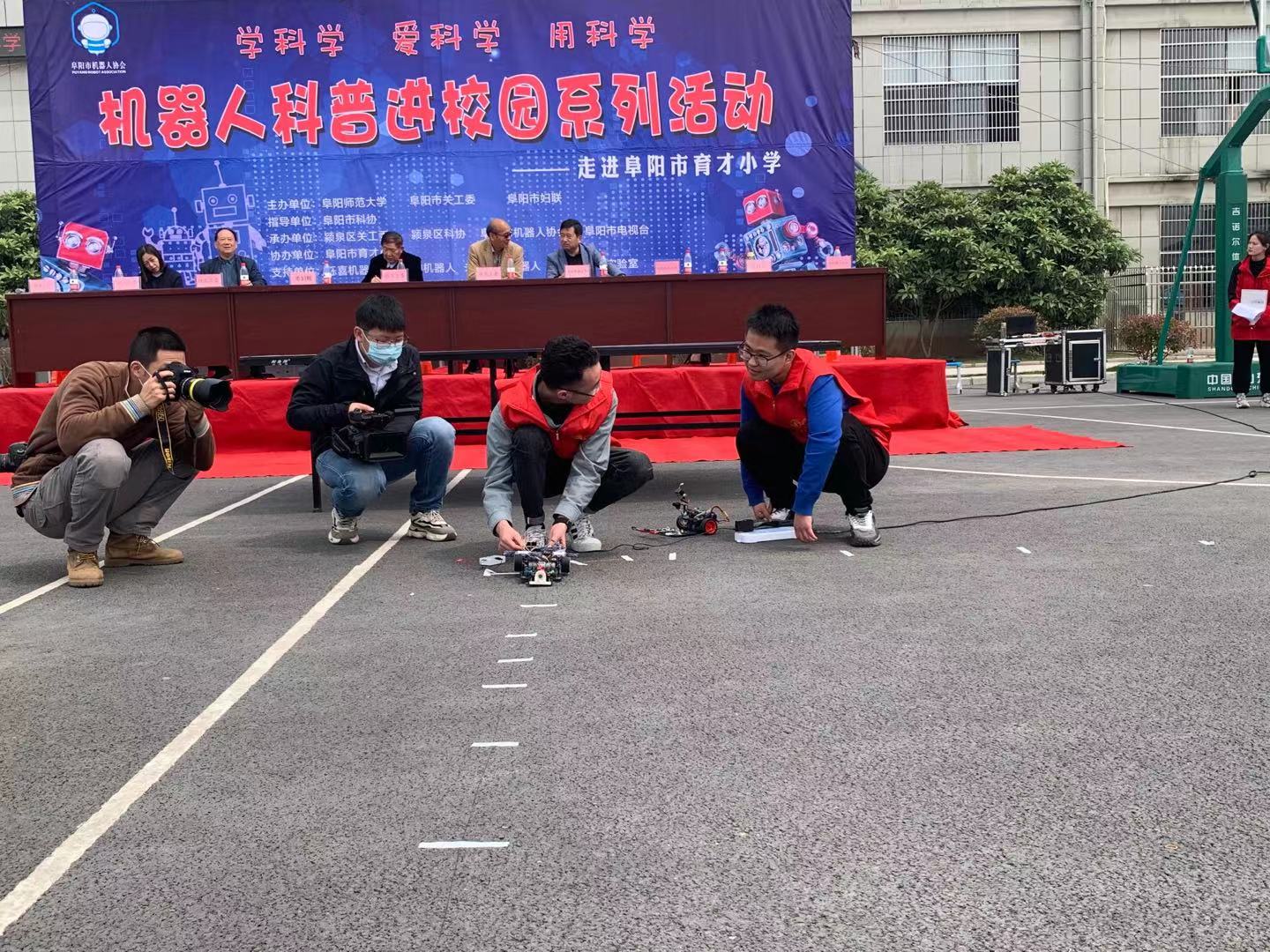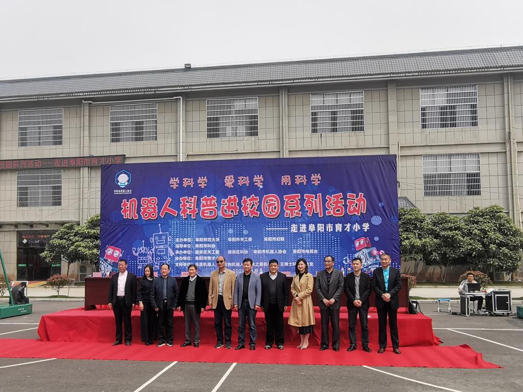 为践行学党史为群众办实事的理念,近日,我院协同阜阳市关工委、阜阳市妇联、阜阳市科协和阜阳市机器人协会一起组织了机器人科普进校园系列活动。本次科普活动第一站来到了阜阳市育才小学。