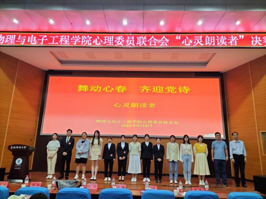 为进一步提升我校大学生心理健康素养,引导大学生将自我发展与时代呼唤相结合,培育大学生自尊自强、理性平和、心怀家国的积极心态,促进学生全面健康发展,2021年5月9日下午,由校心理健康教育中心主办、我院承办的“心灵朗读者”决赛在西湖校区F楼报告厅举行。参赛选手由各学院通过初赛推选产生,我院党委副书记张传智、心理委员联合会指导老师何文、辅导员李聪以及校心理委员联合会主席和部分学院心理委员联合会主席担任评委。