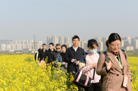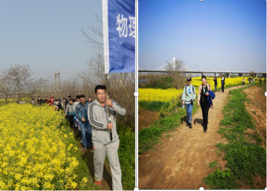 难得这样亲近自然,体验放松,老师们或成群结伴,或三两为伍,迈着矫健的步伐,走在油菜田边,穿过林间小径。大家一路上谈笑风生,一边欣赏美景,一边拍照留念,抒发愉悦心情。经过近三个小时的行程终于到达了本次活动的终点,大家虽然有些累,但依然很快乐!