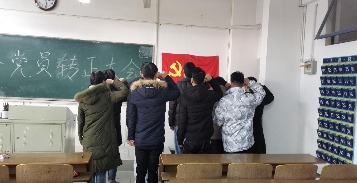 会议开始,组织委员汤宗兵同志宣布支部大会开始,全体起立,奏国歌。安凯迪等5位同志汇报自己在预备期间的表现,表明自己对转正的态度和今后的决心。随后,入党介绍人向支部大会介绍预备党员安凯迪等5位同志在预备期的培养考察情况,并对其能否按期转为正式党员表明意见。与会同志对5位预备党员能否按期转正进行充分讨论。接着,进行大会无记名投票表决,同意安凯迪等4位同志将按期转为正式党员,徐杨皖智同志转正延期半年。最后,在赵文君同志的带领下,支部正式党员和5位预备党员重温入党誓词,庄严地面向党旗进行入党宣誓。