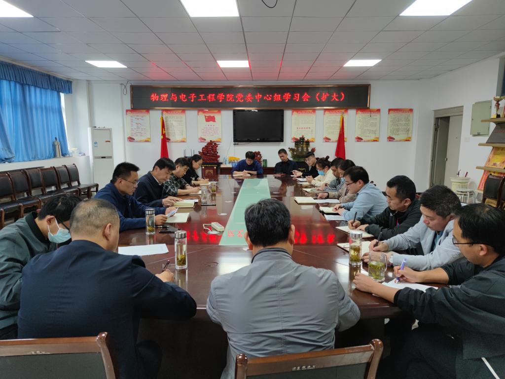 5月13日下午,物理与电子工程学院党委中心组在躬行C楼306会议室举行集体学习会,学习贯彻习近平总书记在中央政治局常务委员会上和在庆祝中国共产主义青年团成立100周年大会上的重要讲话精神,围绕如何做好疫情防控工作等进行研讨交流。学院党政领导、党委委员、党支部书记、科级干部、专兼职辅导员参加集体学习会,学习会由党委书记吴学军主持。