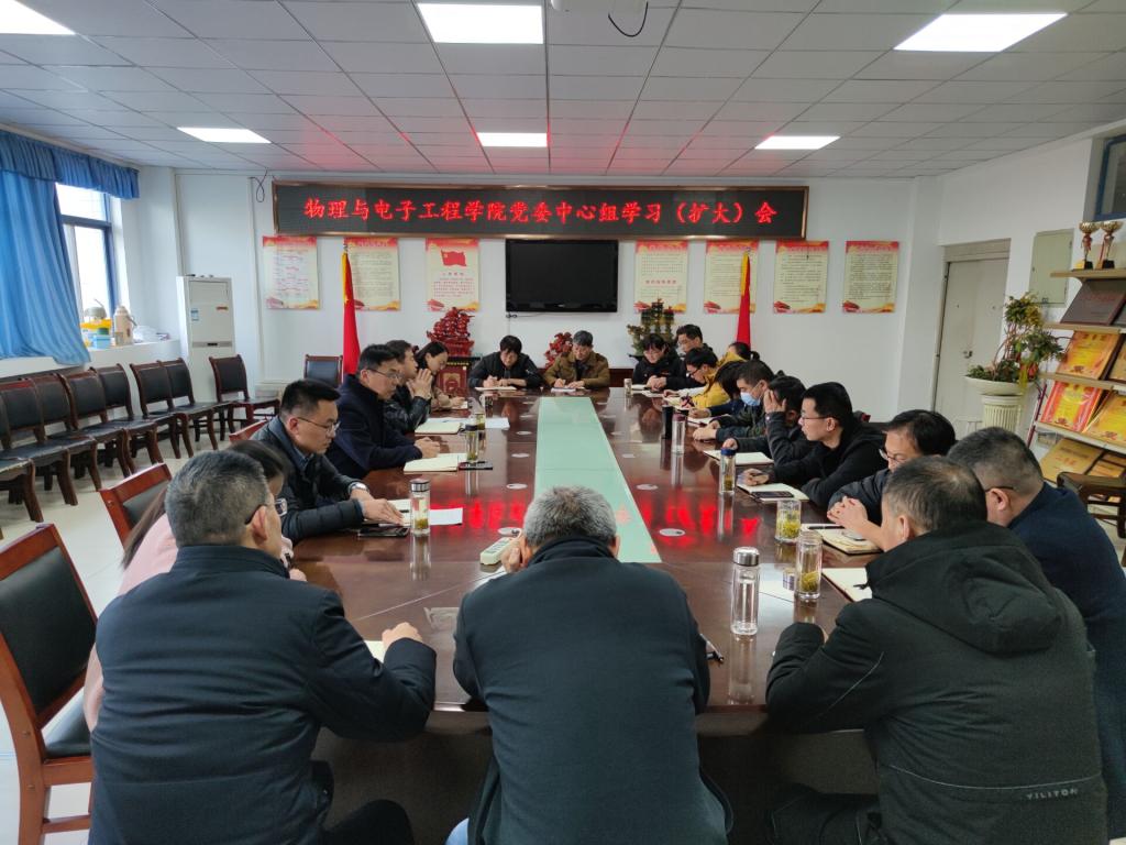 3月2日下午,物理与电子工程学院党委在躬行C楼306会议室举行本年度第2次中心组集体学习(扩大)会,梳理工作思路,强化工作作风,部署新学期工作。学院党政领导、党委委员、科级干部、党支部书记、专职辅导员等参加了会议,会议由学院党委书记吴学军主持。