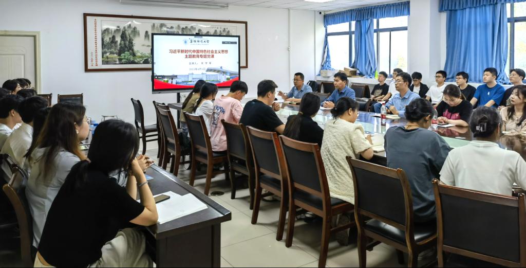 为扎实开展学习贯彻习近平新时代中国特色社会主义思想主题教育,全面落实党的二十大的战略部署和各项任务,6月6日下午,学院党委书记吴学军在躬行C楼306会议室为研究生党支部讲了专题党课,支部全体党员和入党积极分子参加了党课学习,校主题教育第四指导小组的有关人员列席了党课。