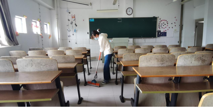 清扫前,各党小组副组长带领大家学习了习近平总书记关于劳动的重要论述并对此次清扫进行了明确的分工。随后,全体同学携带工具对每个教室进行打扫,从桌椅到门窗再到黑板讲台,大家齐心协力、相互合作,认真清扫不放过每一个角落。