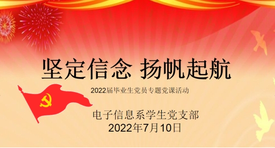 青春心向党,建功新时代。面对新时代无比恢宏壮阔的历史征程,电子信息系学生党支部将继续带领全体党员及入党积极分子不忘初心,砥砺前行,以更加振奋的精神、务实的作风、优异的成绩,迎接党的二十大胜利召开。