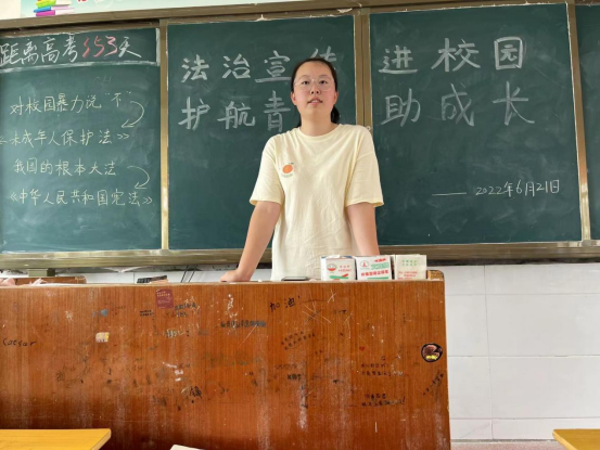 为贯彻落实习近平总书记关于青年工作的重要思想,引导和帮助广大青年学生上好与现实相结合的“大思政课”,在社会课堂中“受教育、长才干、作贡献”。6月—8月,支部普法宣传小分队在安徽省巢湖市烔炀中学开展了“法治宣传进校园,护航青春助成长”主题宣讲活动。有效提升了中学生的法治素养和法治意识,筑牢了健康成长的“防火墙”。